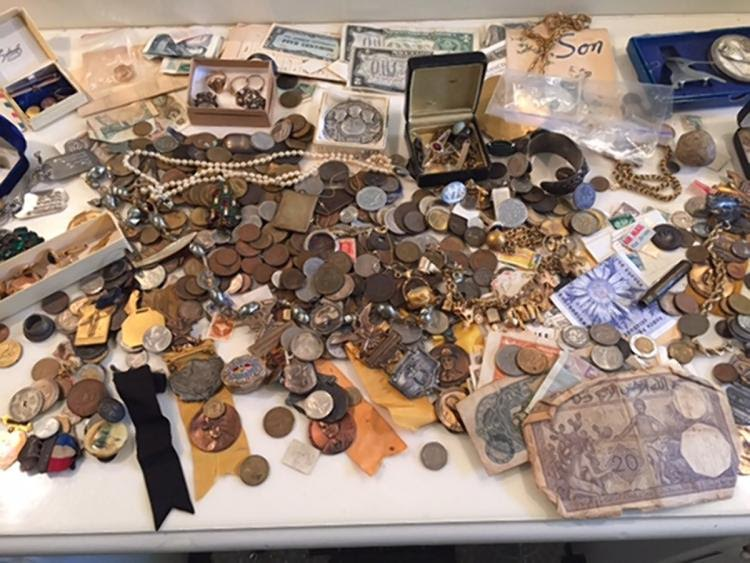 Det hemliga utrymmet var fullt av smycken, kontanter och andra gamla föremål.